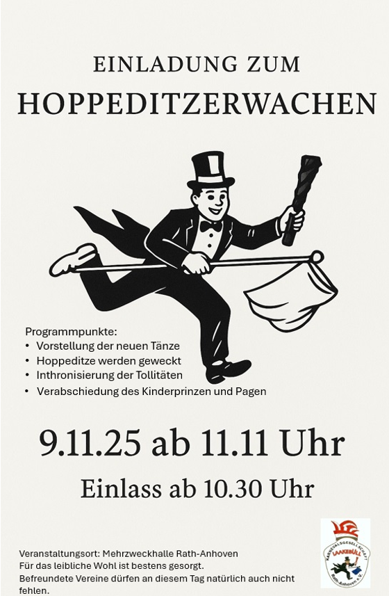 Start in die Session 25/26 November 4, 2025 LaakebuellWebmaster Uncategorized Wir laden alle Jecken ein mit uns in die neue Session zu starten.